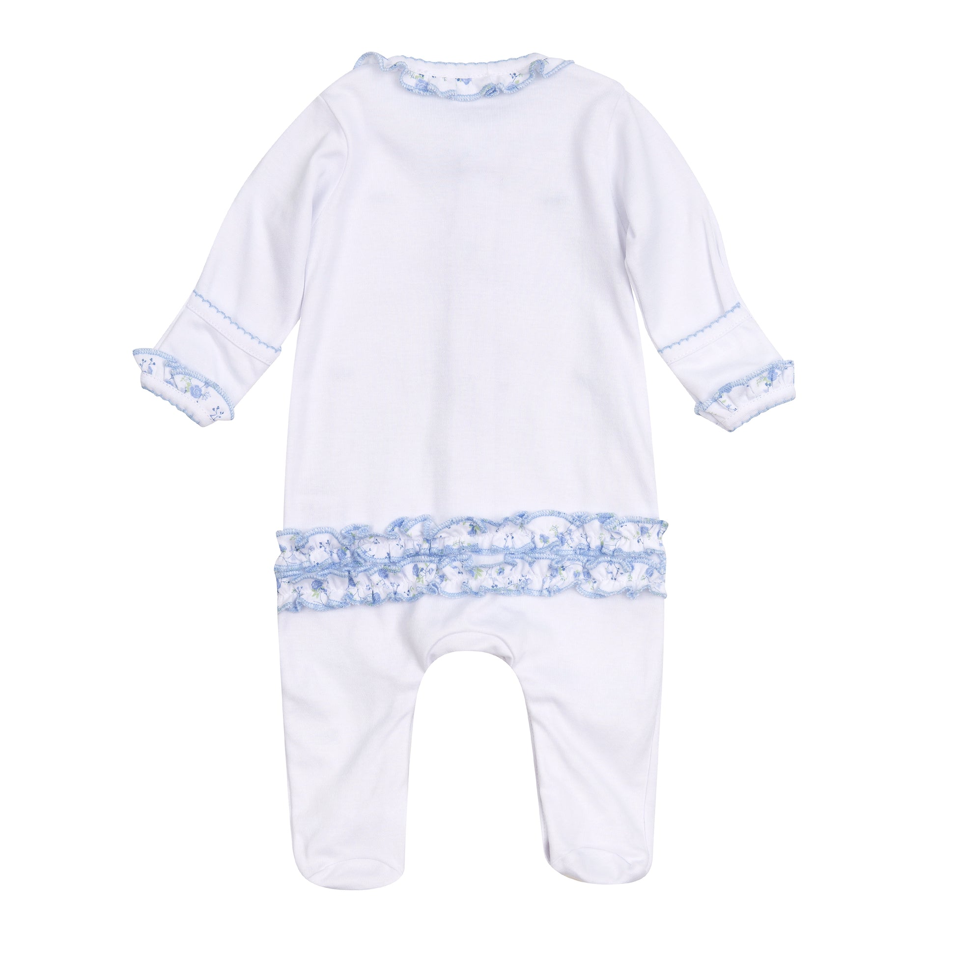 Introducing Skylar's Classics Ruffle Footie for your baby girl in a delightful hydrangea color. This footie adds a touch of girly style to any outfit while keeping your little one cozy and comfortable. Perfect for napping, playing, and everything in between.