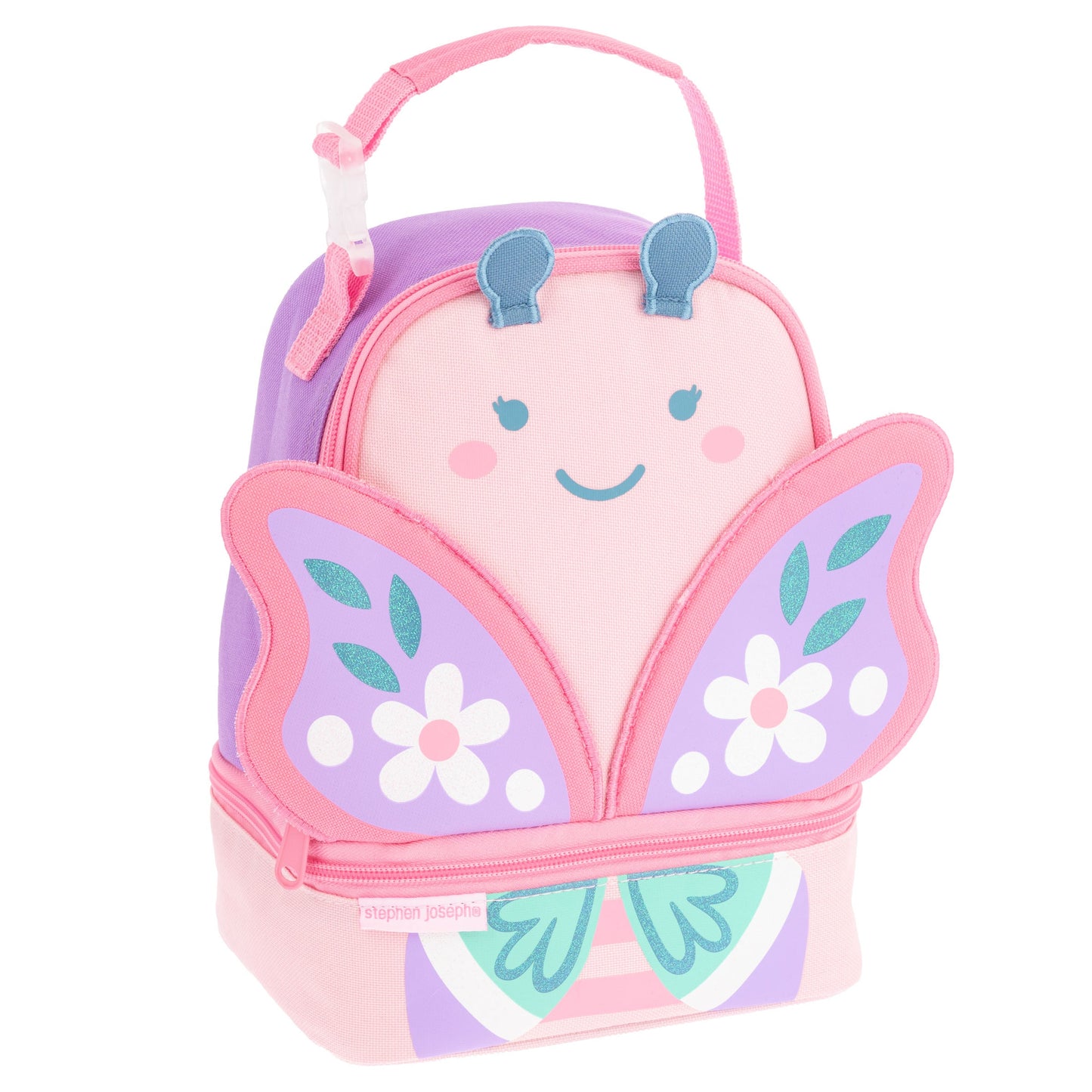 Every child looks forward to lunch time, but give your hungry monkey even more reason to go bananas with a Stephen Joseph Lunch Pal lunch box. Available in several fun and friendly designs to suit even the fussiest of eaters. With an Easy to carry and extendable strap for swinging over their shoulder, Lunch Pals keeps food fresh and at the right temperature. The separate compartment on the bottom is great for extra snacks or napkin and silverware storage. Want to make it even more individual? Then why not personalize it with your child’s initials or name?