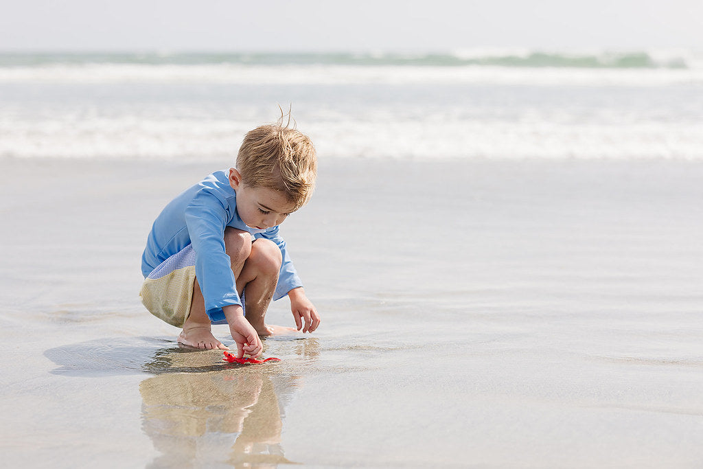 Make a splash this season in these vibrant Funtasia swim trunks! Featuring a fun split design with bold blue and yellow check patterns, these trunks are topped with an adorable sailboat applique that captures the spirit of summer adventure. Perfect for pool days, beach trips, or backyard water play, they combine eye-catching style with comfort. The playful color-blocking and nautical details make them a standout choice for boys who love making waves.