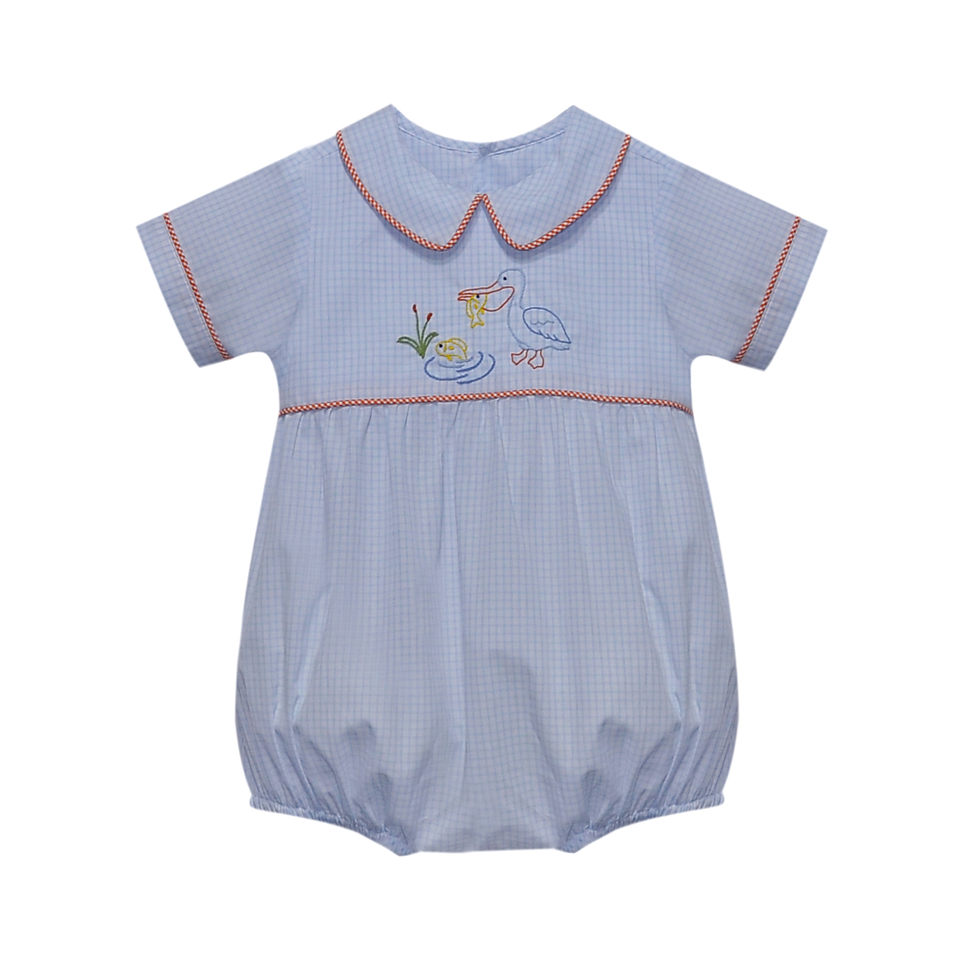 Introducing Remember Nguyen's Tate Bubble in Pelican, the perfect addition to your little guy's fall wardrobe. This bubble features a charming pelican embroidery that adds a playful touch to any outfit. Comfortable and stylish, it's the ideal choice for any fall occasion.