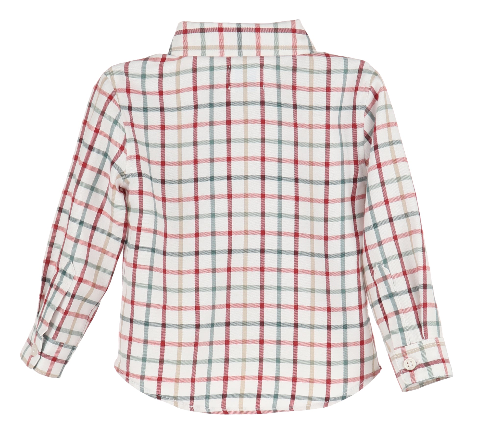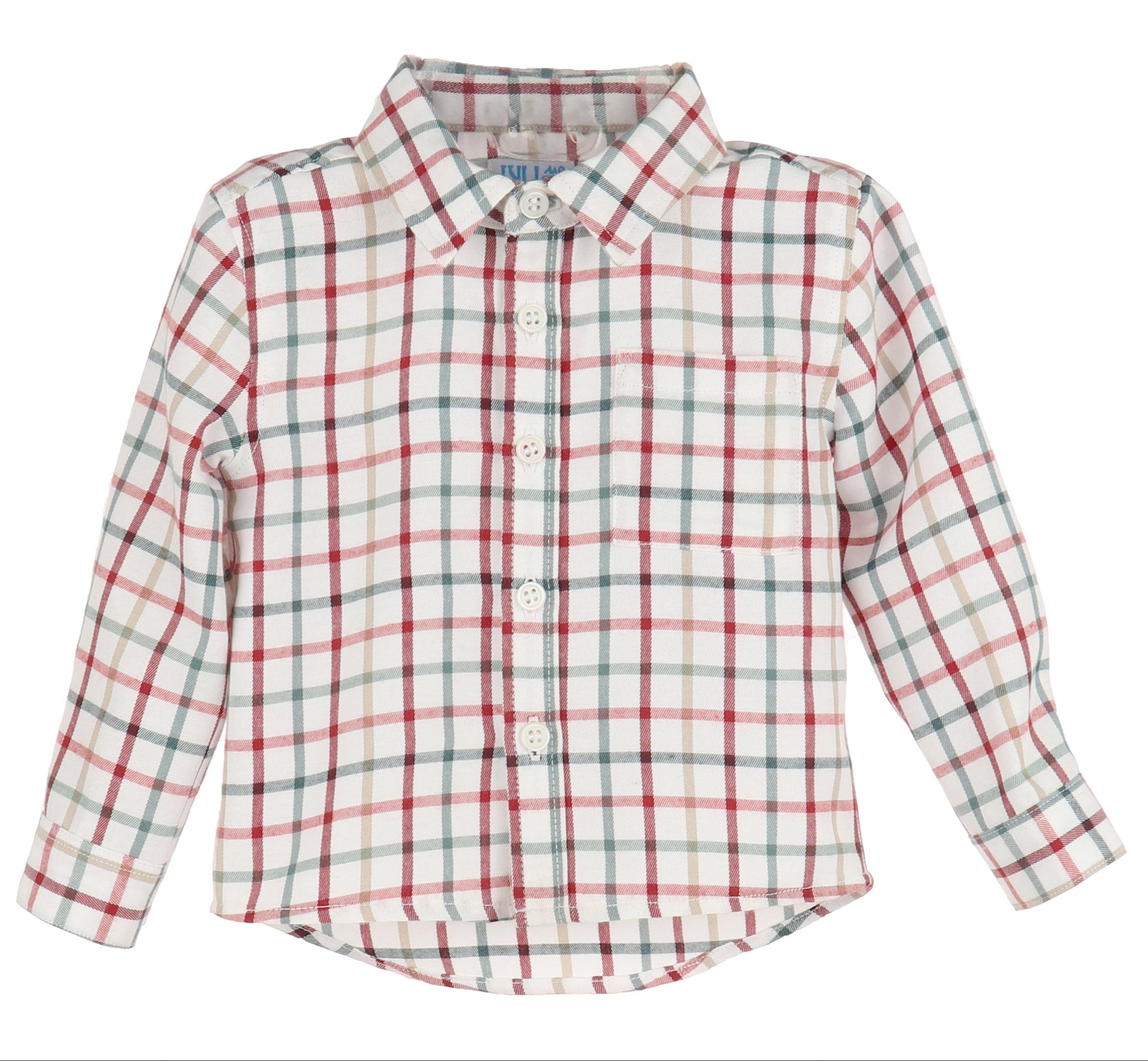 Classic and crisp with a hint of holiday charm, this boy’s button-up from Luli & Me brings timeless polish to cooler days. The plaid pattern—woven in rich shades of red, forest green, and soft beige—feels right at home by the fireplace or at festive family gatherings. Finished with a smart collar and handy chest pocket, it’s a versatile favorite that pairs effortlessly with corduroys, khakis, or even a cheeky little bowtie. A staple piece with a season-spanning spirit.