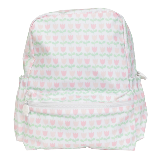 Available in three sizes. The tot is just right for the toddler that carries his or her own bag. The small fits a pocket folder. And the large is your standard sized backpack for older kids or when you need to carry a little more.