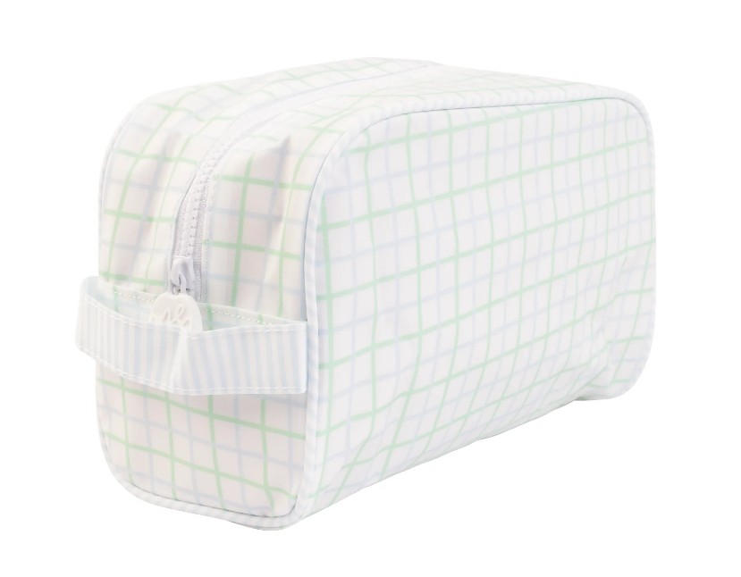 Coated, clean, and cute! The Dopp Kit is a must-have travel companion. Big enough to fit all of your travel necessities - toiletries, medicines, hairbrushes and bows, you name it! Inside you will find a mesh pocket to help you keep up with your smaller items.