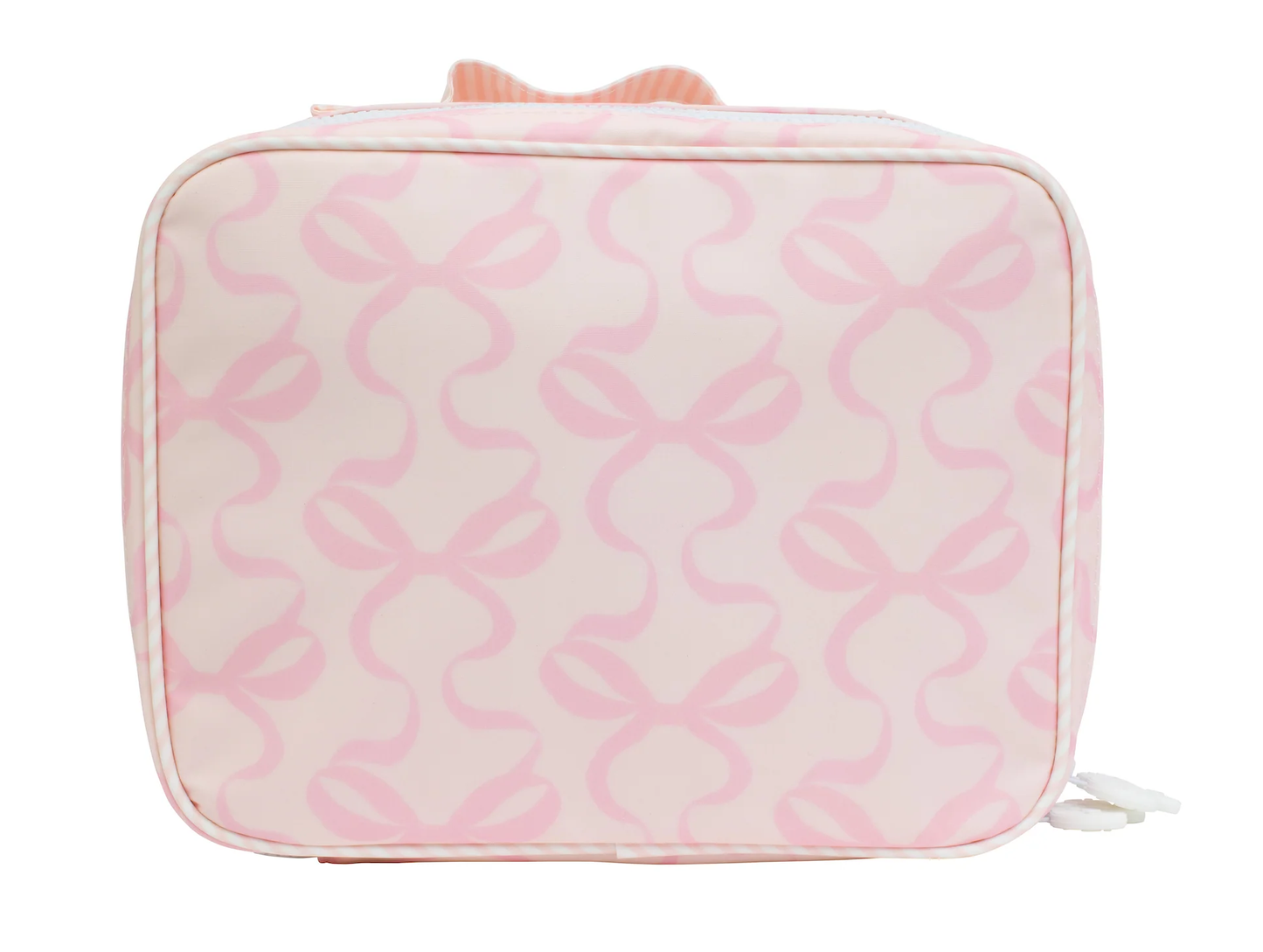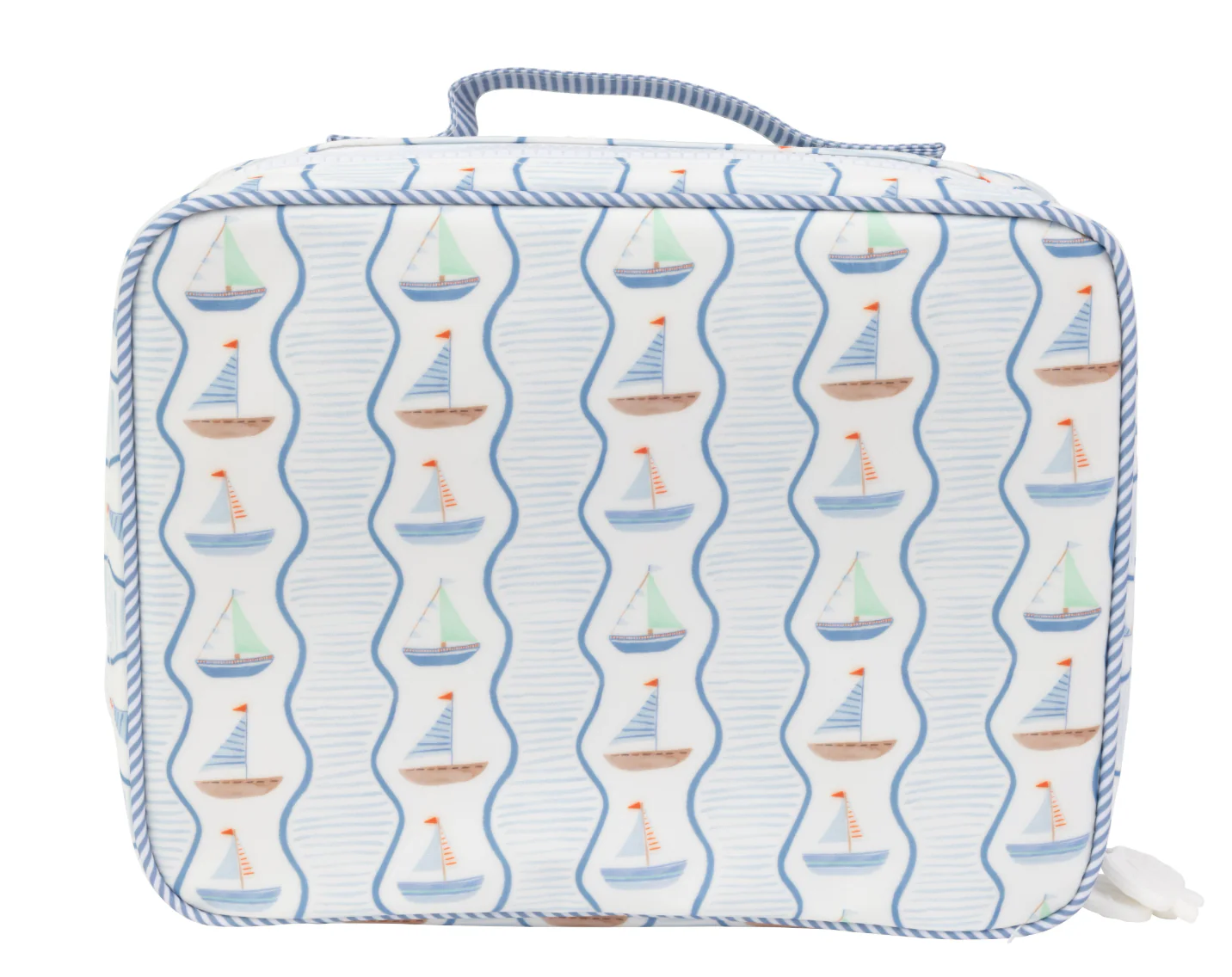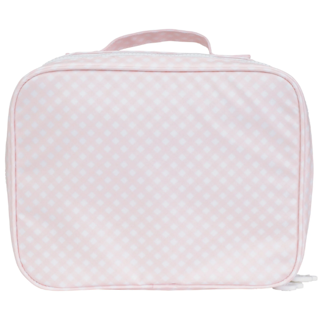 The Lunchbox is now available in ten classic patterns, all wipeable. It is just the right size for your bento box. Equipped with a mesh inner pocket to hold your cooler packs and love notes, specifically placed on the back of the lunchbox leaving the front open for monogramming.