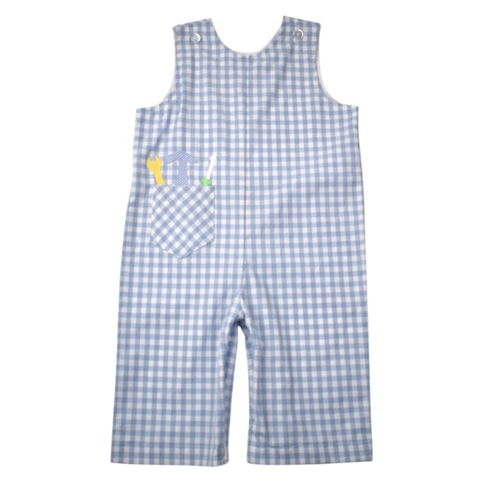 Little builder, big style! This gingham longall from Funtasia features a charming tool-themed pocket—complete with a cheerful wrench and screwdriver—perfect for your mini handyman’s day of discovery. The soft blue and white checks bring classic sweetness, while the embroidered pocket adds a spark of playtime personality. With comfy coverage and timeless appeal, it's ready for every fix-it mission and photo-op moment alike.
