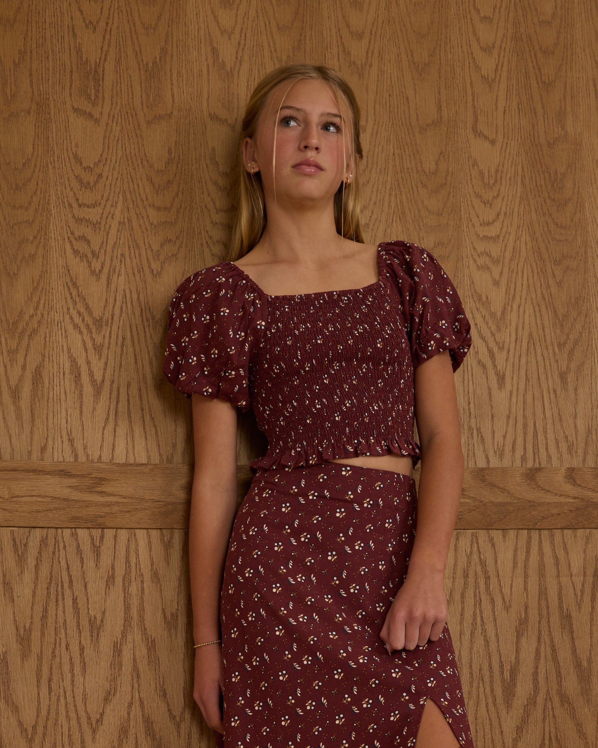 Rylee + Cru's Trixie Top is a fun and flirty top to add to your wardrobe! Featuring a cropped fit with bubbled sleeves and a smocked bodice.