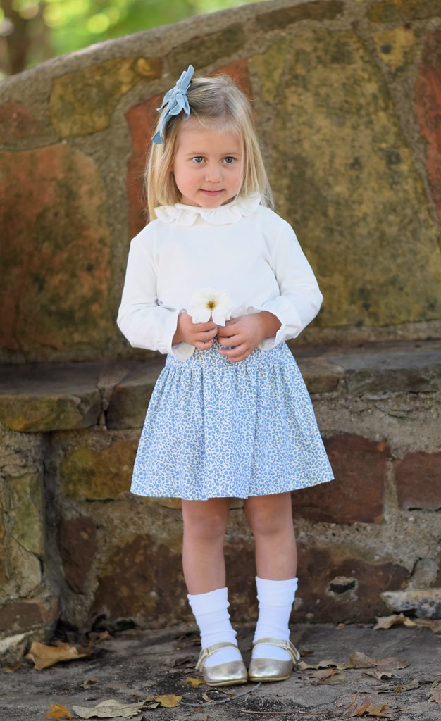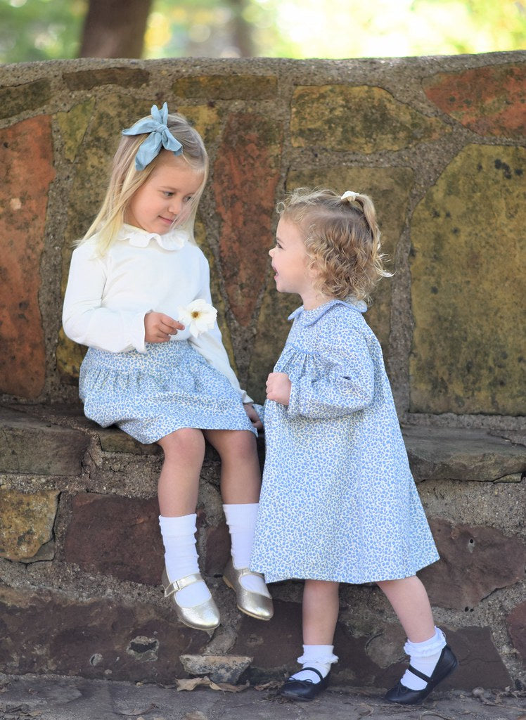 Sweet, stylish, and ready for twirls—this Funtasia set pairs a ruffled ivory blouse with a blooming blue floral skirt for a look that’s as timeless as it is playful. Perfect for picture days, parties, or just feeling fancy.