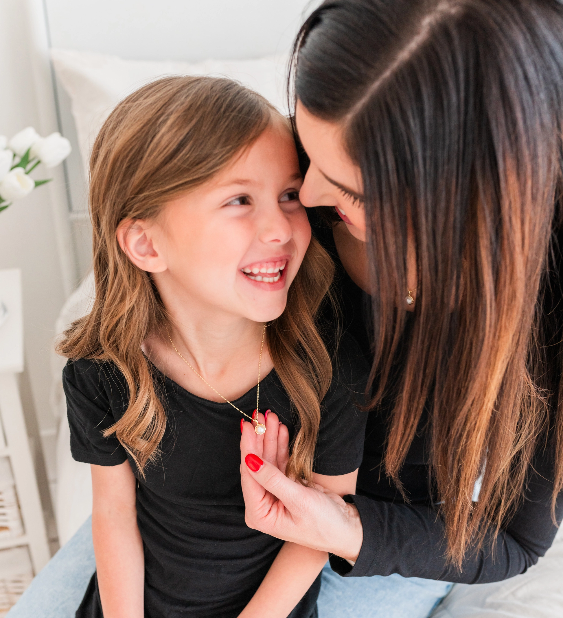 Children's 14K gold-plated soft freshwater pearl necklace with a dainty embellished edge. These necklaces make an adorable flower girl gift, pearl pendant for little girls, birthday gift or Easter present. This also makes a great keepsake for granddaughters and comes on high-quality Italian rolo chain with durable clasp.