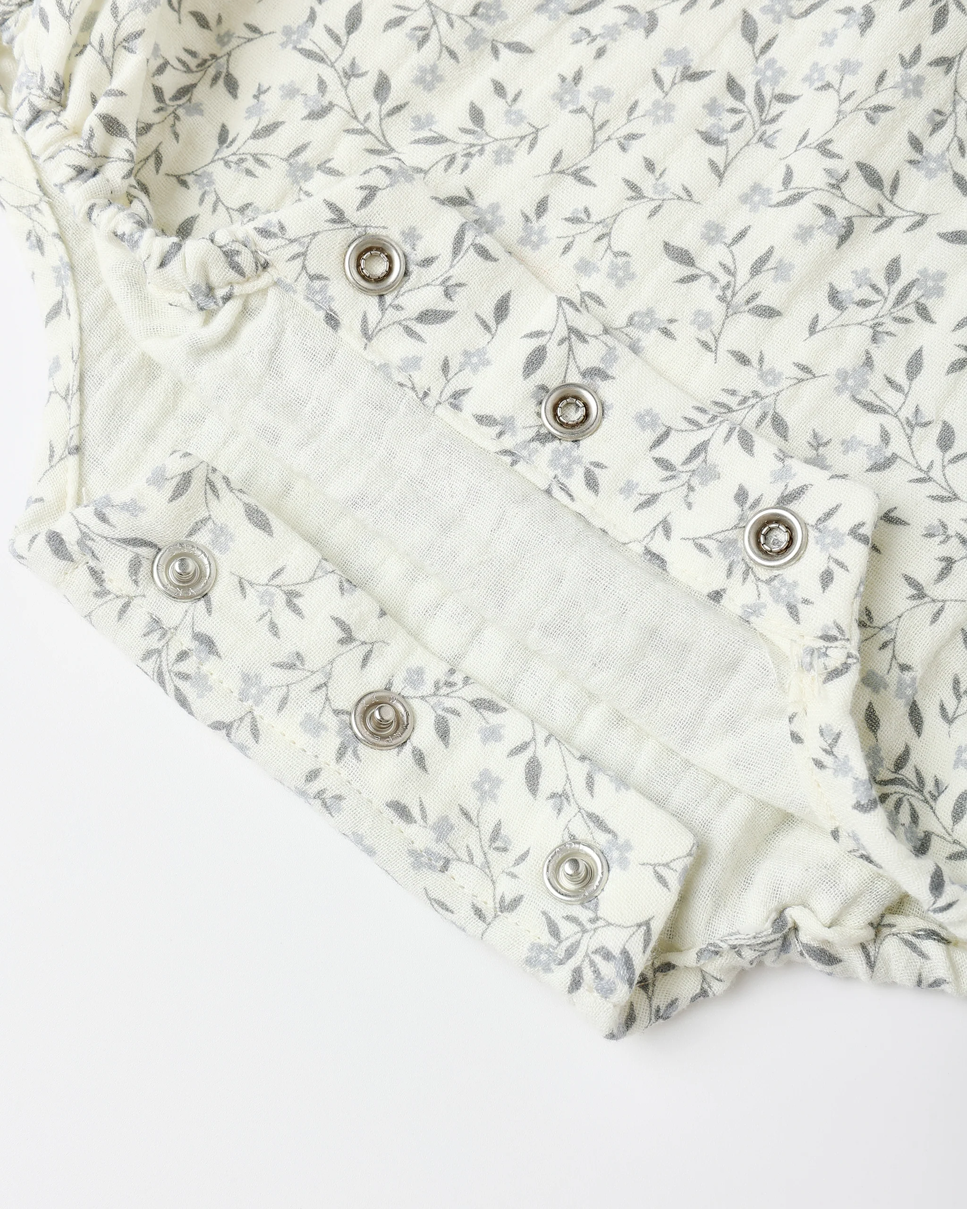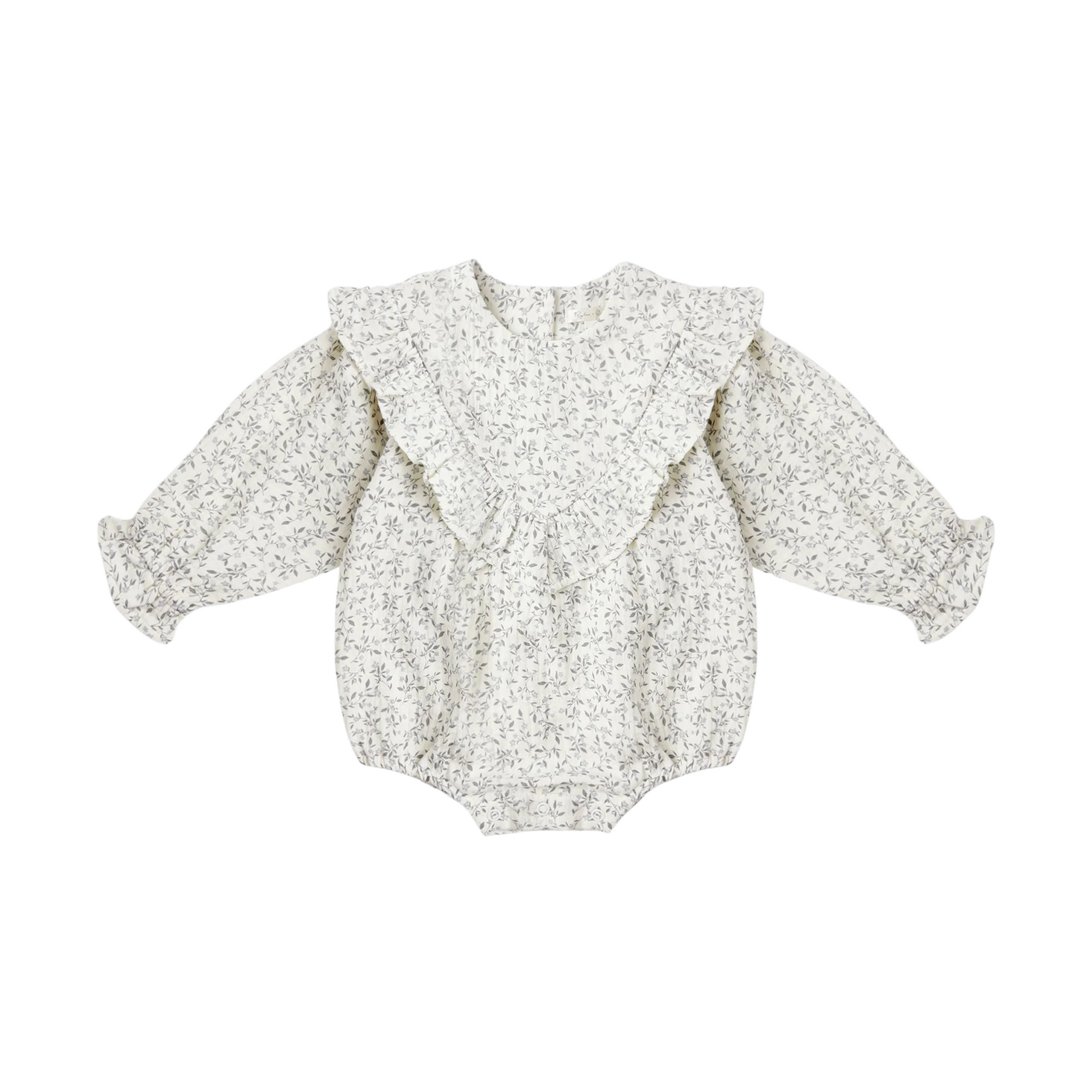 Rylee + Cru's Winnie Romper features darling V ruffle trim, elasticized sleeve and leg openings for a sweet bubble silhouette, and bottom snaps for easy changes.